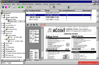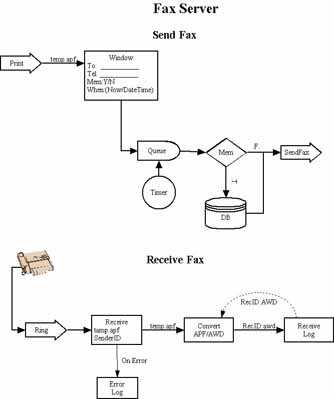 Several general modules are also included in the package, like for example an integrated fax system with networking capabilities, text processor with indexing, imaging module with scanning capabilities, etc. The fax server can be configured to automatically receive the faxes while later the user can associate the received faxes with the corresponding cases by moving them to the appropriate document folders. The concept upon which the fax server and client were build, is presented below.