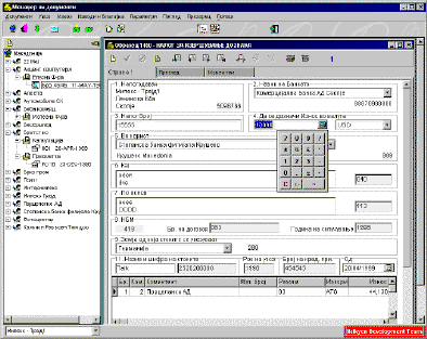 Software for trading companies Objectives The main objective was to develop a software application for trading companies with full document management capabilities. The software was developed strictly in compliance with the legal procedures related to trade in the Republic of Macedonia. These legal procedures clearly define the types of legal documents and their flow during the import and export process. The application is primarily targeted towards companies whose main business is import/export of goods and who handle hundreds of cases per year for their clients.